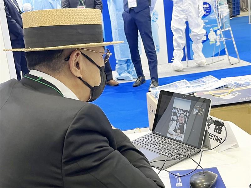 展會上,日中一帶一路促進會會長、日本深圳總商會會長、日本國際文化機構理事長黃實老師蒞臨東京醫(yī)療展安徽國林醫(yī)療展位,安徽國林醫(yī)療的趙總經理與黃實老師進行了現(xiàn)場視頻會議。